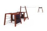 Unikalus atrakcionas AMAZON pagamintas iš patvarios laminuotos medienos ir jam suteiktas atitinkamas kokybės sertifikatas. Skirtingais ornamentais dekoruoti laminuotos medienos stulpai sujungiami naudojant naujovišką įsmeigtą jungtį. Stulpų skerspjūvis yra 105x210mm, o tinklai tarp jų pagaminti iš itin patvaraus 16mm plieninio laipiojimo lyno, padengto poliesteriu ir su plastikinėmis jungtimis. Laipiojimo sienelė su laipiojimo uolomis pagaminta iš vandeniui atsparios beržo faneros. Šis funkcionalus laipiojimo rėmas siūlo įvairias laipiojimo, balansavimo ir šliaužiojimo galimybes. Jame yra adrenaliną sukeliantis vaidmenų žaidimas „Tarzan trail zipline“, kuriame vaikai gali sėdėti ir sklandyti nuo vieno elemento prie kito. Laminuotos ir dažytos medienos stulpai įbetonuojami į žemę naudojant karštai cinkuoto metalo jungiamąsias detales.