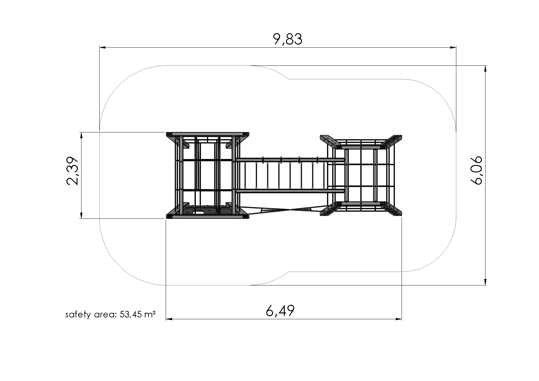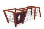Unikalus AMAZON laipiojimo rėmas pagamintas iš patvarios laminuotos medienos ir jam suteiktas atitinkamas kokybės sertifikatas. Skirtingais ornamentais dekoruoti laminuotos medienos stulpai sujungiami naudojant naujovišką įsmeigtą jungtį. Stulpų skerspjūvis yra 105x210mm, o tinklai tarp jų pagaminti iš itin patvaraus 16mm plieninio laipiojimo lyno, padengto poliesteriu ir su plastikinėmis jungtimis. Laipiojimo sienelė su laipiojimo uolomis pagaminta iš vandeniui atsparios beržo faneros. Šis funkcionalus laipiojimo rėmas siūlo įvairias laipiojimo, balansavimo ir šliaužiojimo galimybes. Elementus sujungia vertikalūs ir horizontalūs laipiojimo tinklai. Laminuotos ir dažytos medienos stulpai įbetonuojami į žemę naudojant karštai cinkuoto metalo jungiamąsias detales.