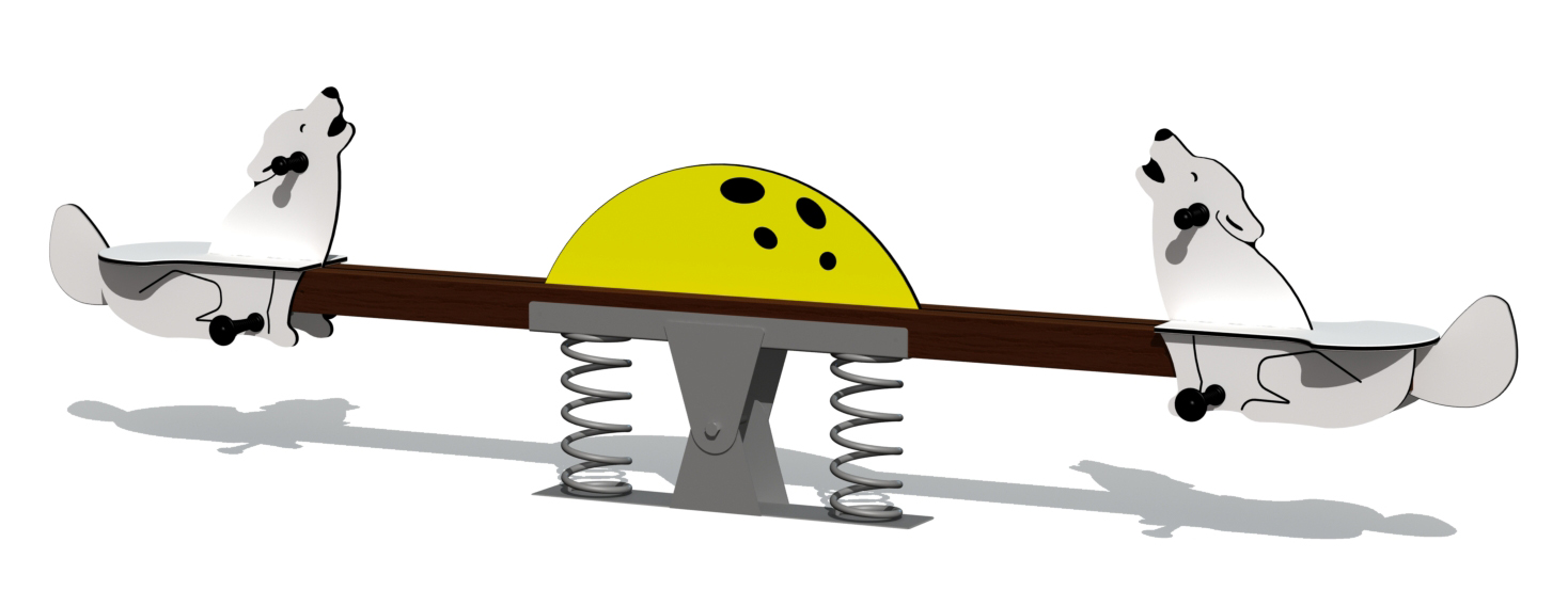 Smagūs ir unikalūs ARCTIC WOLVES sūpynės sukurti taip, kad jei vienas galas kyla aukštyn, kitas leidžiasi žemyn. Dėl spyruoklių, sumontuotų šalia sukimosi taško, vaikai taip pat gali jį naudoti patys. Realiai atrodanti sandariklio forma sudaro sėdynę, joje yra rankenos ir kojų atramos. Smaigtuko sija pagaminta iš 2 dažytų laminuotos medienos sijų. Mechanizmas ir spyruoklės pagaminti iš cinkuoto ir milteliniu būdu dažyto plieno. Vilkai pagaminti iš 15 mm HDPE. Gaminio antžeminės tvirtinimo detalės yra pagamintos iš karštai cinkuoto metalo ir standartiškai įbetonuojamos į žemę.