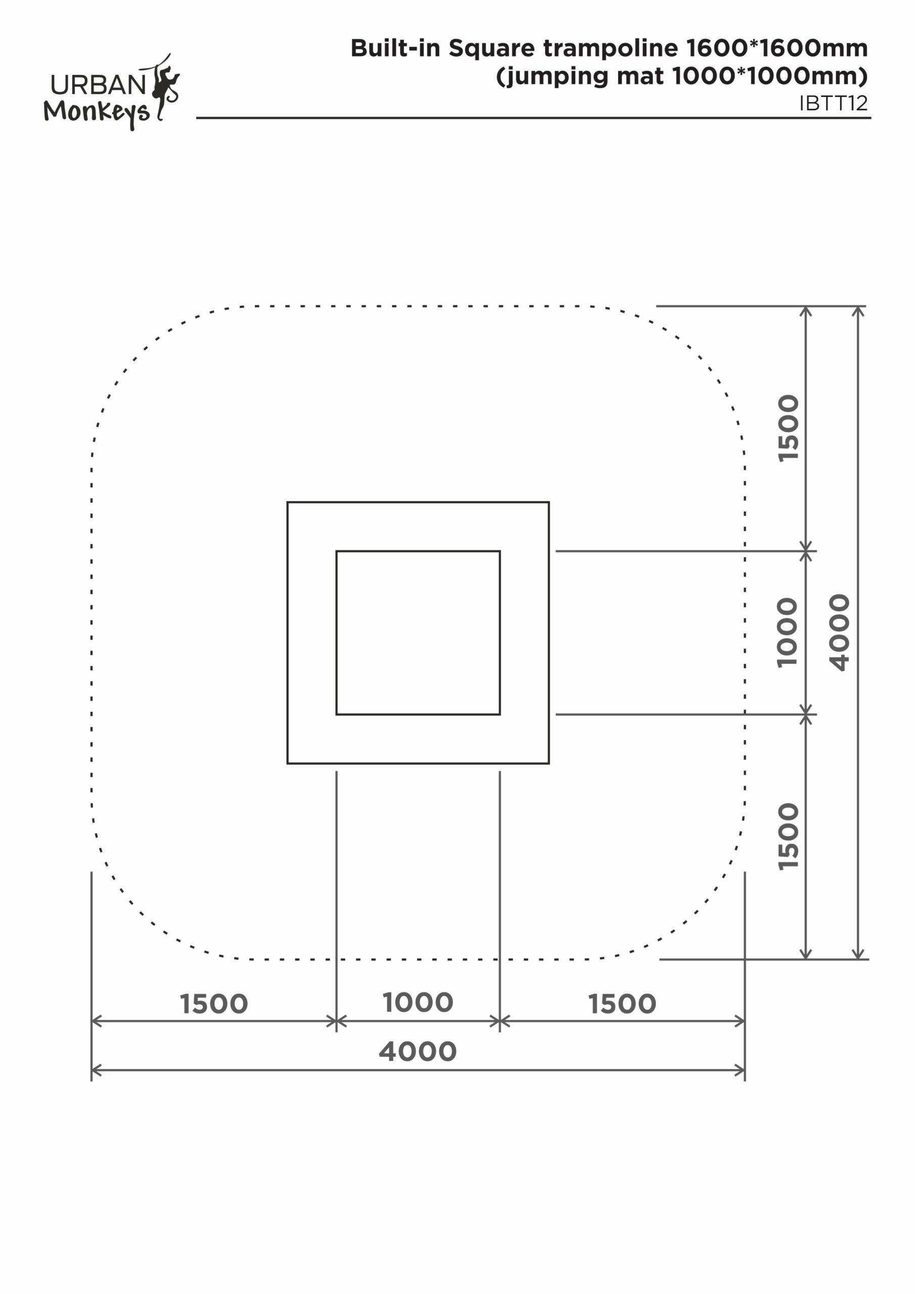 Įmontuotas kvadratinis batutas 1600*1600mm (šokinėjimo kilimėlis 1000*1000mm)
