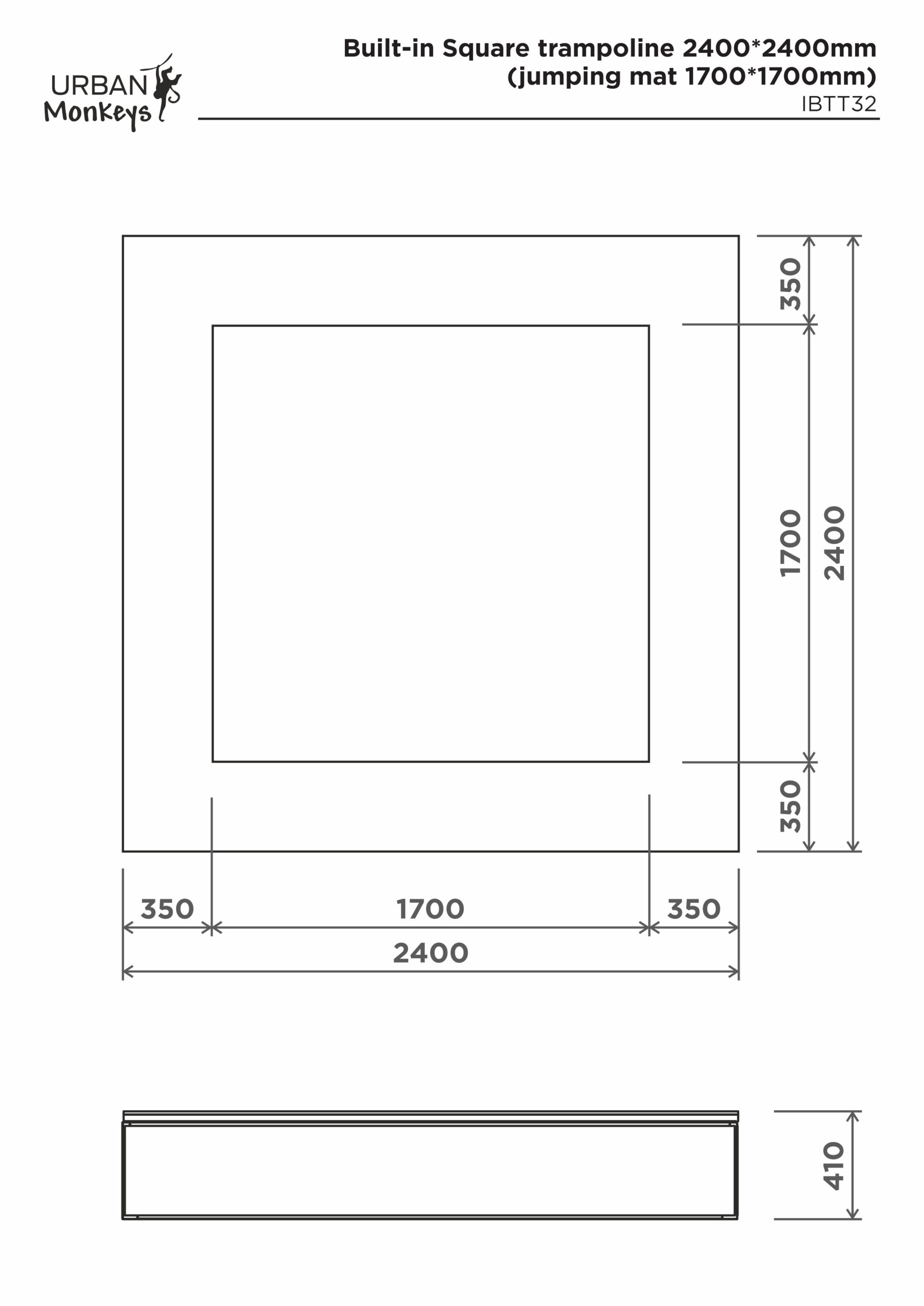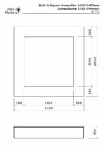 Integruotas kvadratinis batutas 2400*2400mm (šokinėjimo kilimėlis 1700*1700mm)