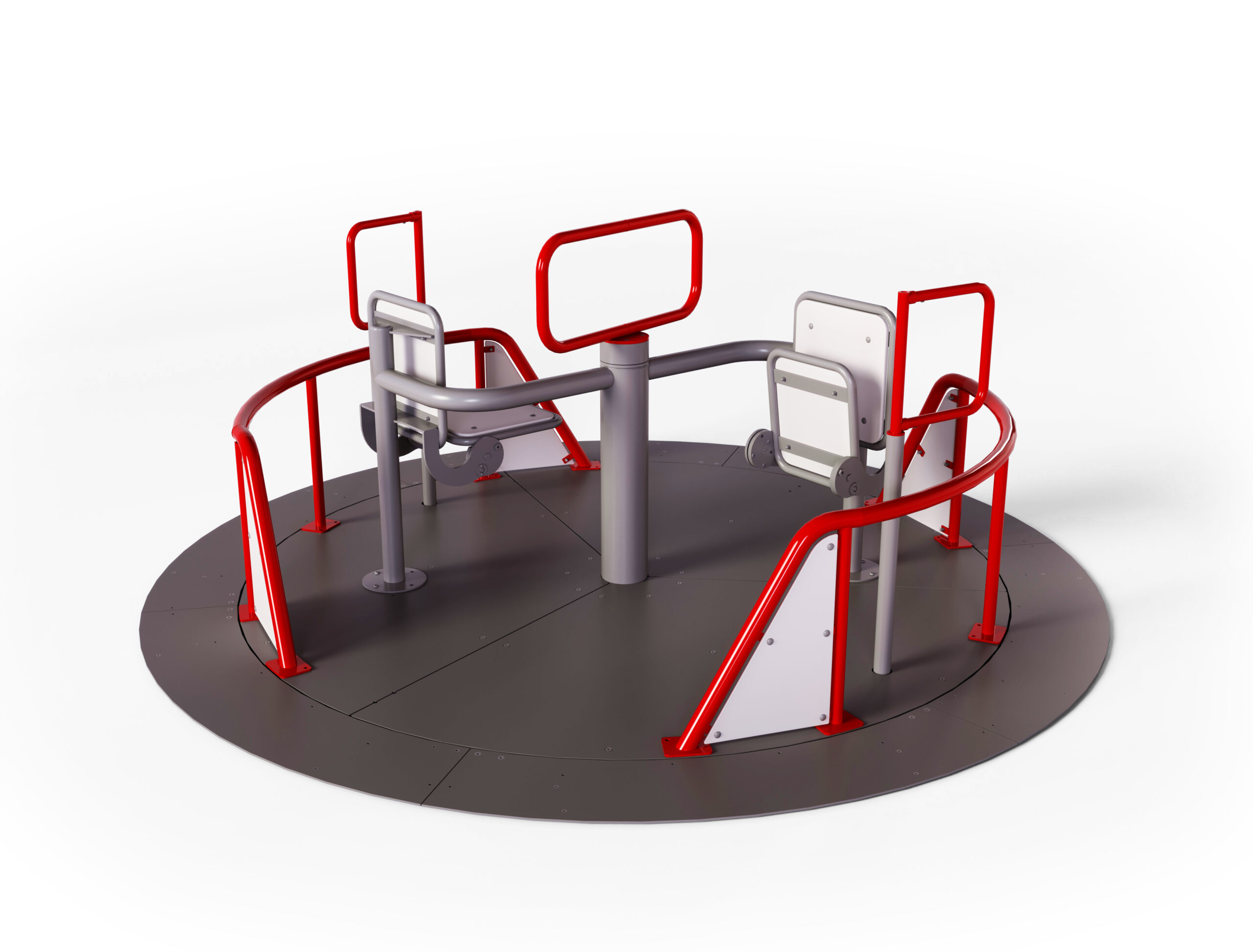 „Inclusive Roundabout“ yra novatoriškas įrenginys, kurio vairavimo būdas yra visiškai kitoks nei kitų rinkoje esančių karuselių. Žiedinė sankryža sukasi tik viena kryptimi. Žaisdamas vartotojas mankština viršutines galūnes. Jis visiškai kontroliuoja įrenginio paleidimo greitį ir tempą ir gali nuspręsti sustoti, nes įrenginyje yra stabdžiai. Jei negalią turintis asmuo negali vairuoti įrenginio, užtenka, kad žaidime dalyvaujantis veiksnus žmogus šią veiklą atliktų. Panašiai yra ir su stabdymu – užtenka stabdyti vienam žmogui. Prietaise yra dvi kėdės, kurios sulankstytos tampa invalido vežimėlio atlošais.