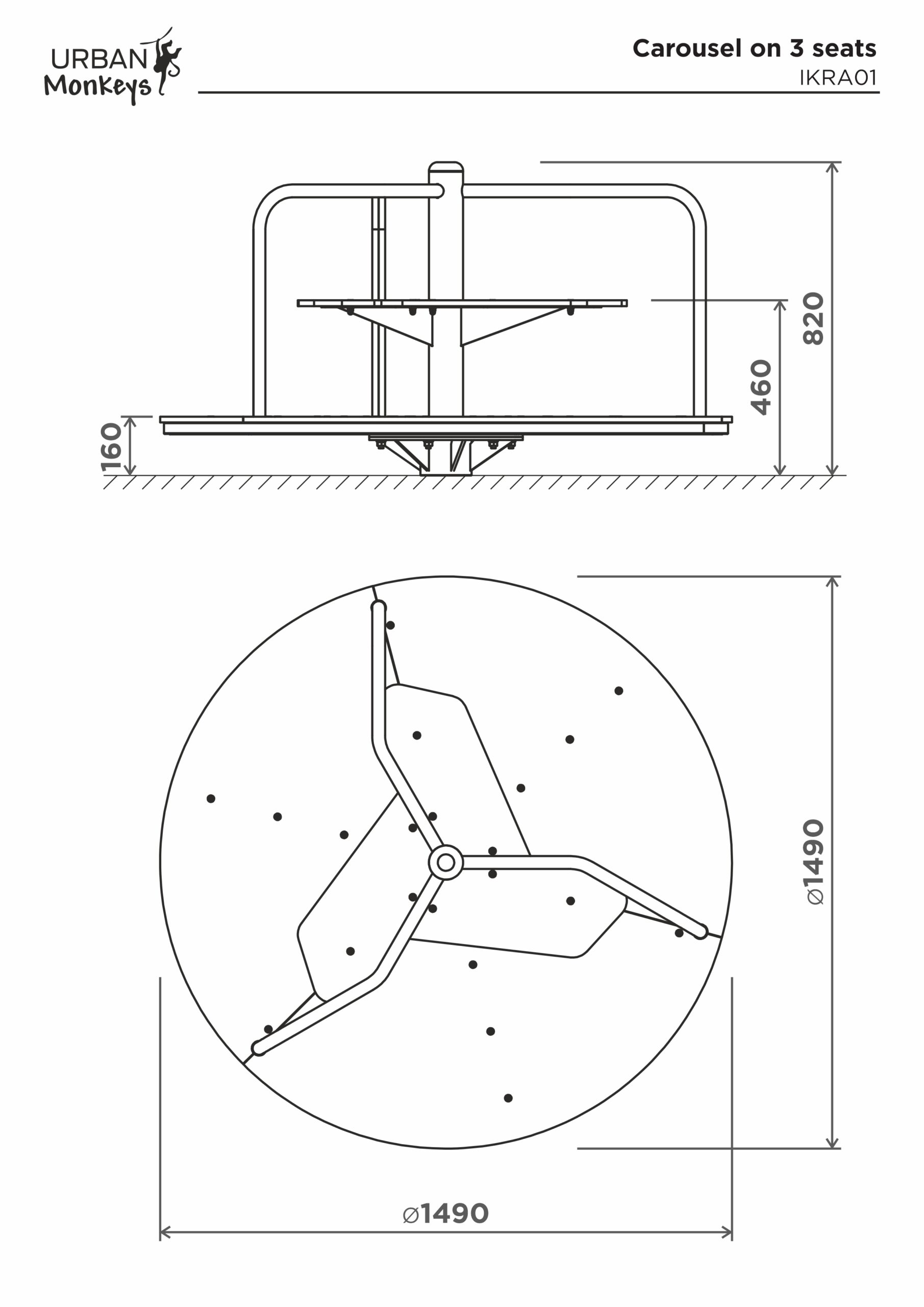 Pradžia Žaidimų aikštelių įranga Suktukai ir karuselės Karuselė ant 3 vietų