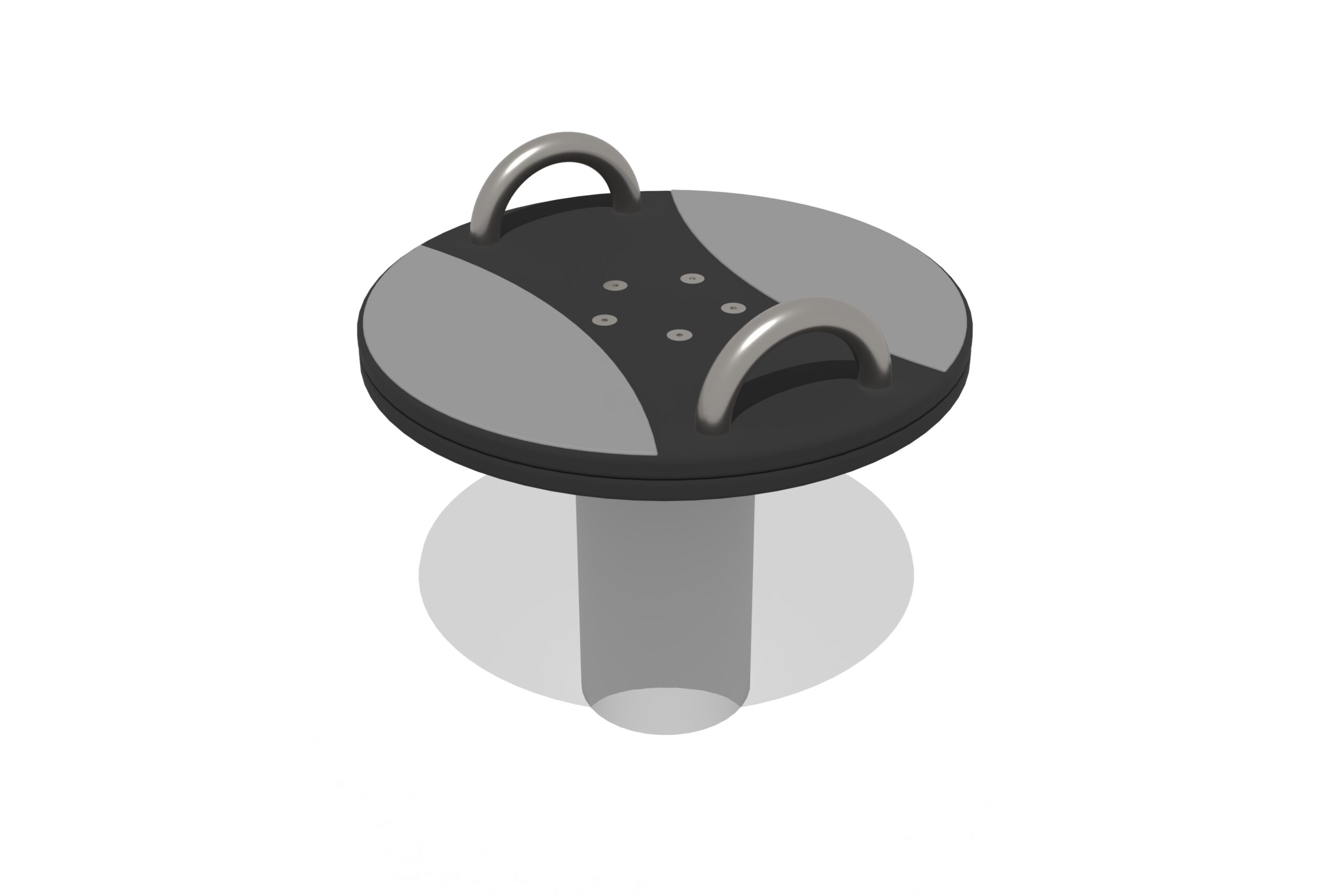 Karuselė MOBILE skirta naudoti vienam vaikui. Karuselė turi rankenas ir sukasi ant guolių aplink centrinę ašį, stovas turi neslidų dangtelį.