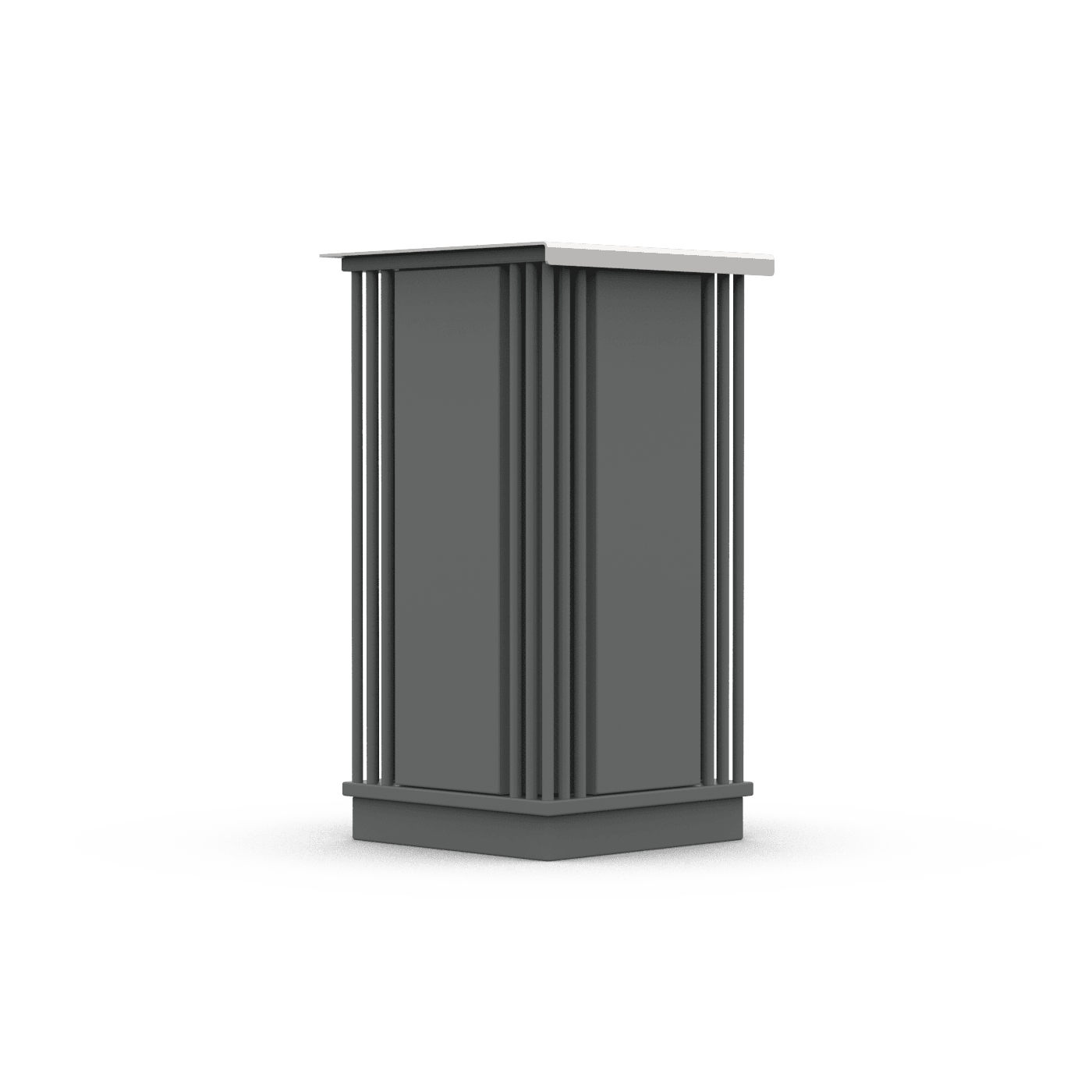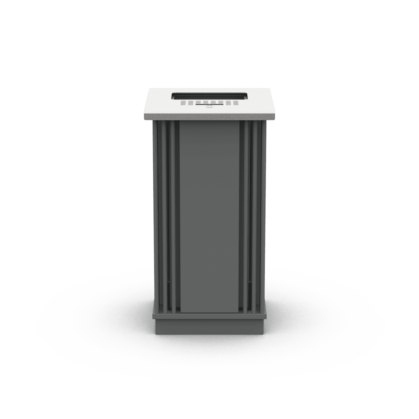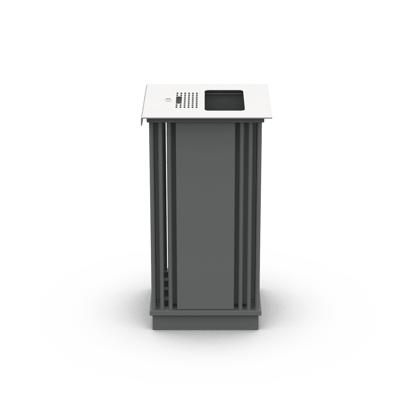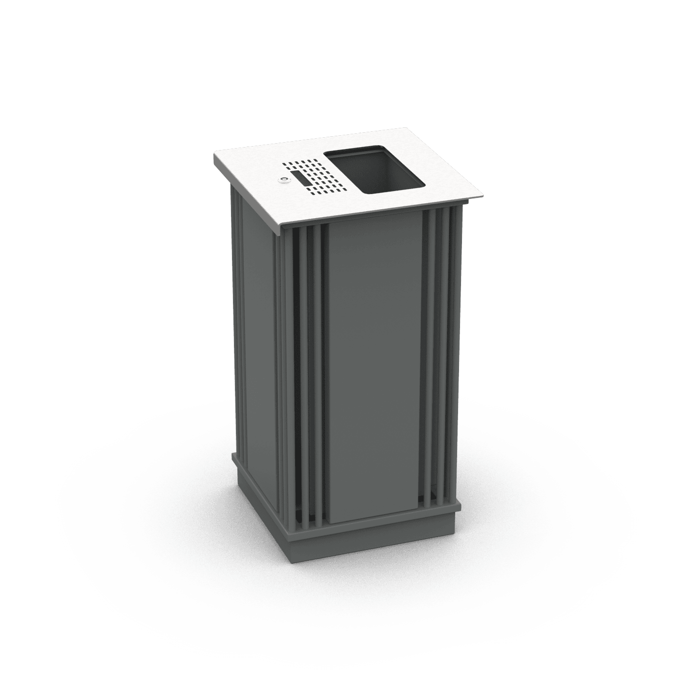 Konstrukcija pagaminta iš plieno, apsaugota nuo korozijos ir padengta milteliniais dažais. Pagal pageidavimą galima pasirinkti nestandartinę miltelinio dažymo spalvą arba pagaminti nerūdijančio plieno konstrukciją, apdailintą smulkiu šlifavimu. Dėžutėje yra nerūdijančio plieno peleninė ir cinkuotos skardos įdėklas. Plienas cinkuotas metalizacijos būdu.