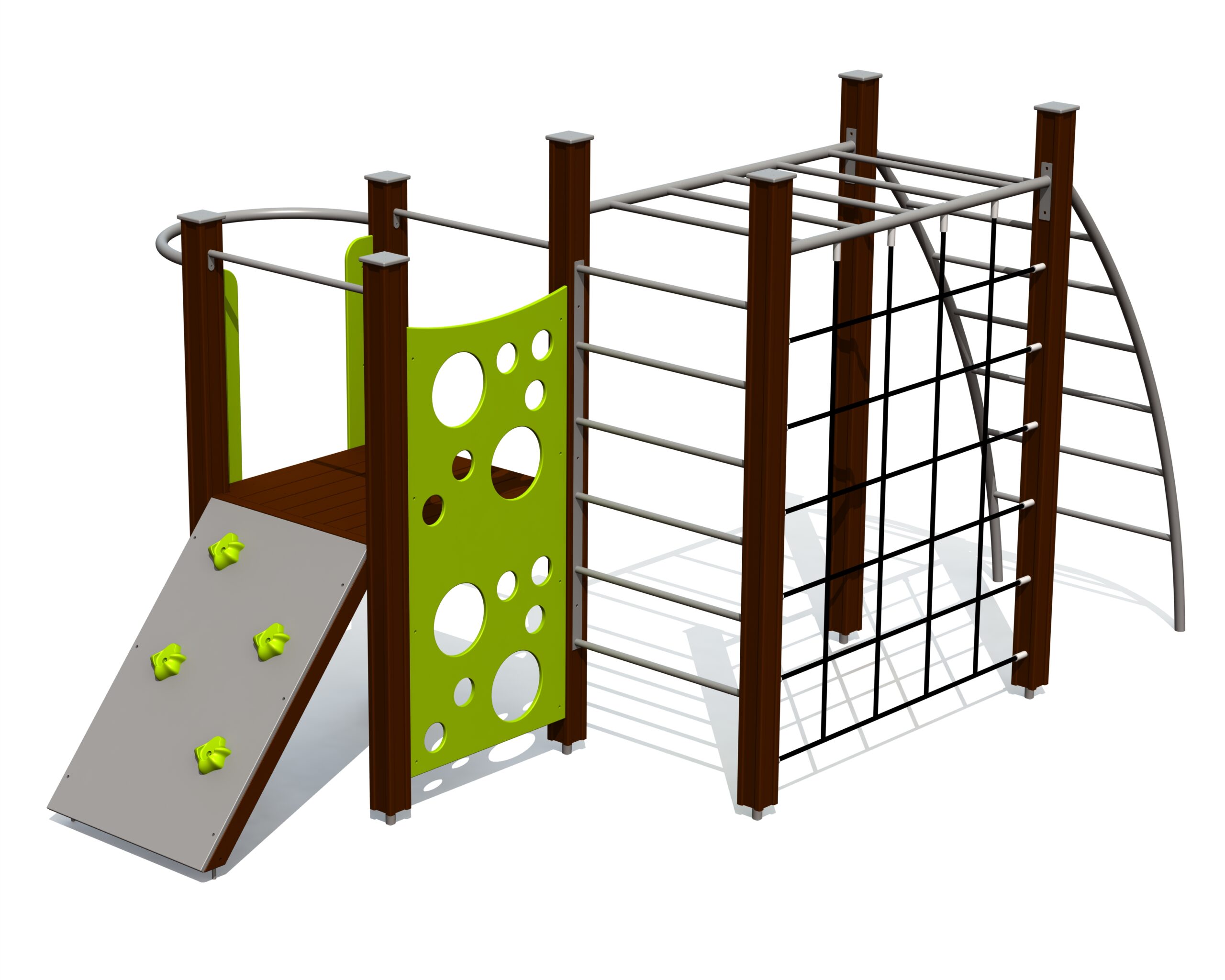 Laipiojimo įranga padeda lavinti vikrumą ir pusiausvyrą bei gerina fizinį pasirengimą. Laipiojimo rėmą sudaro 1,5 metro pločio laipiojimo tinklas, laipiojimo sienelė su skylutėmis, platforma, laipiojimo uolomis šlaitas, vertikalios kopėčios, horizontalios kopėčios, arkinės kopėčios ir ugniagesio stulpas.