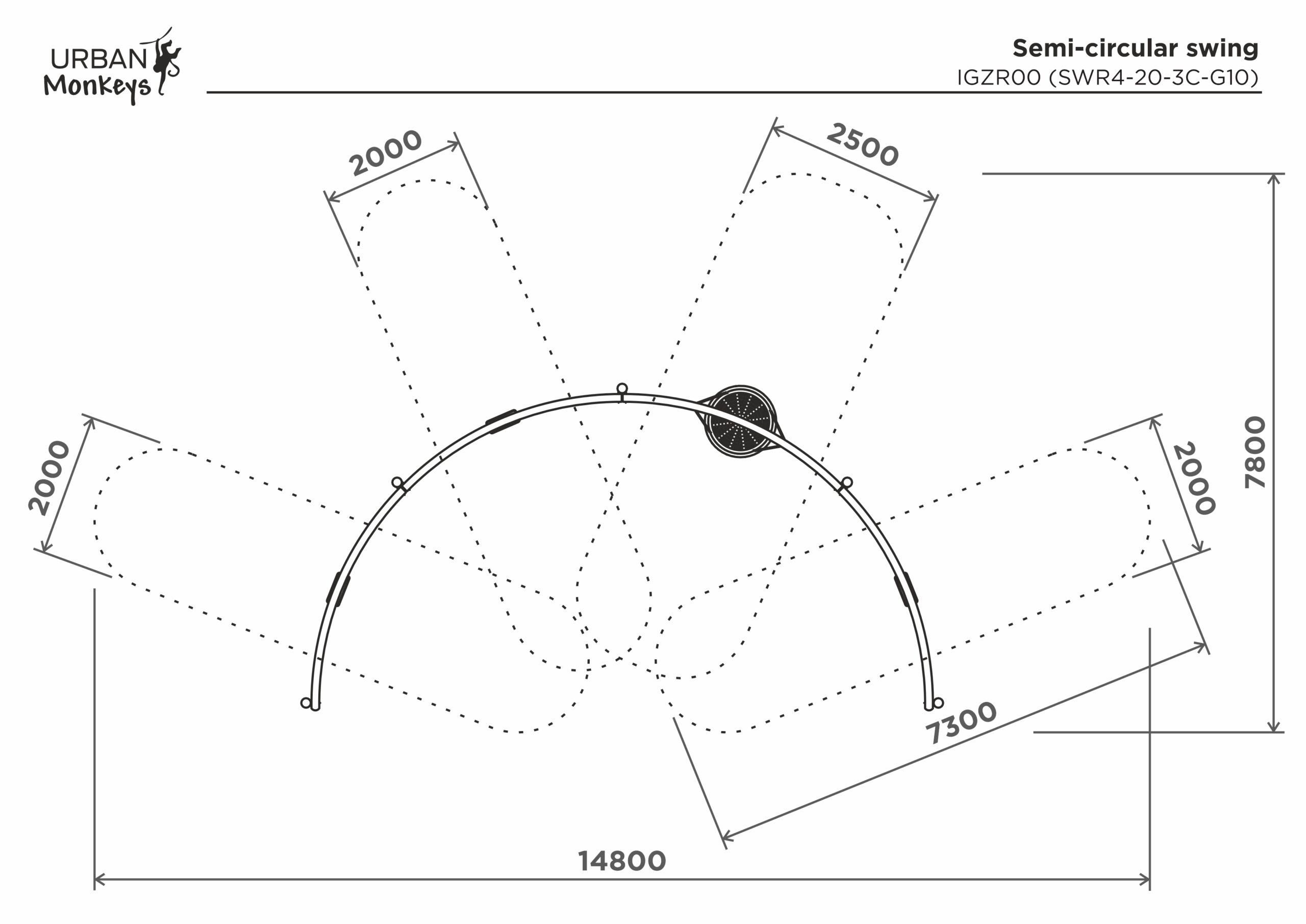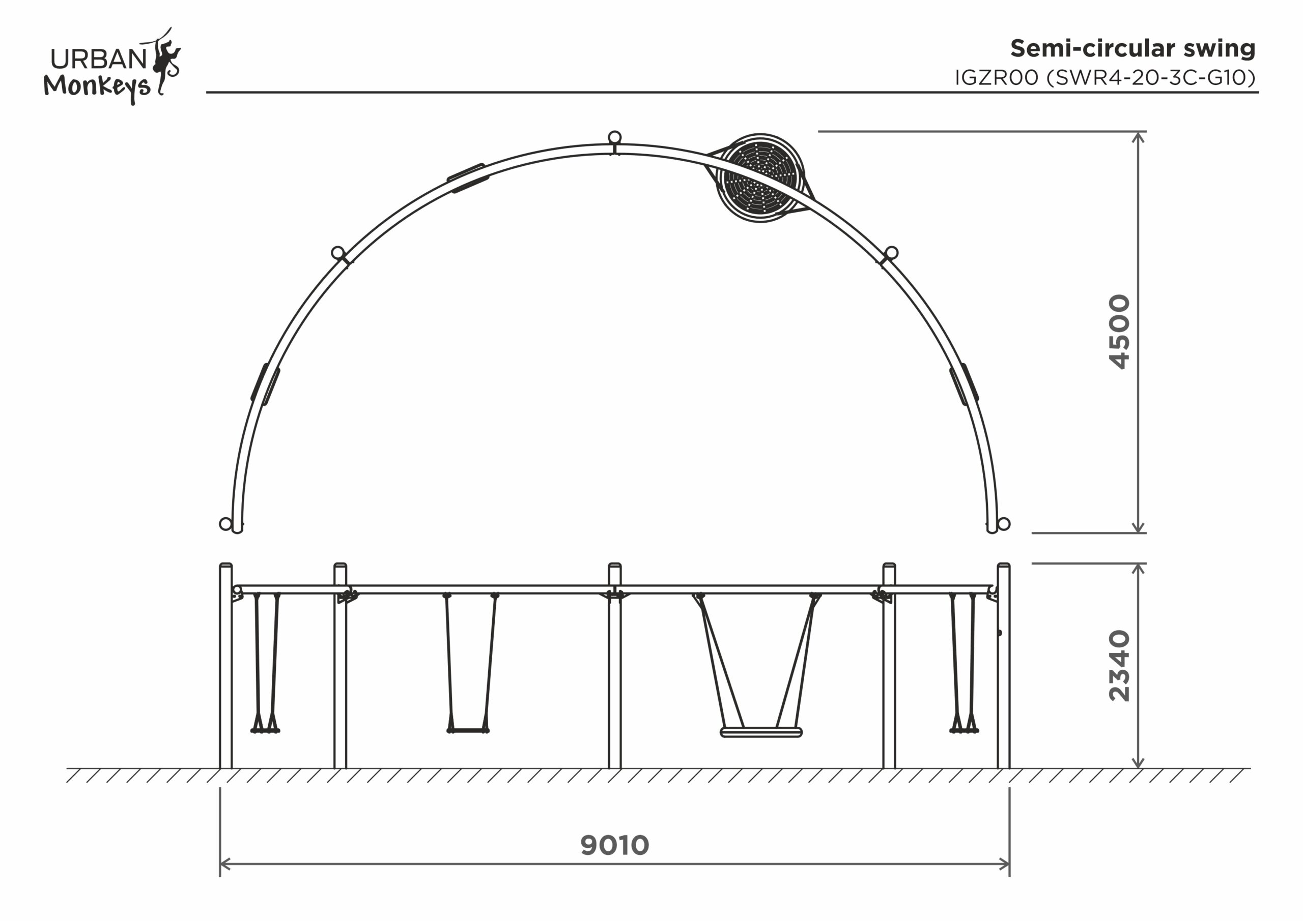 Pradžia Žaidimų aikštelių įranga Sūpuoklės Pusapvalės sūpynės SWR4-20-3C-G10
