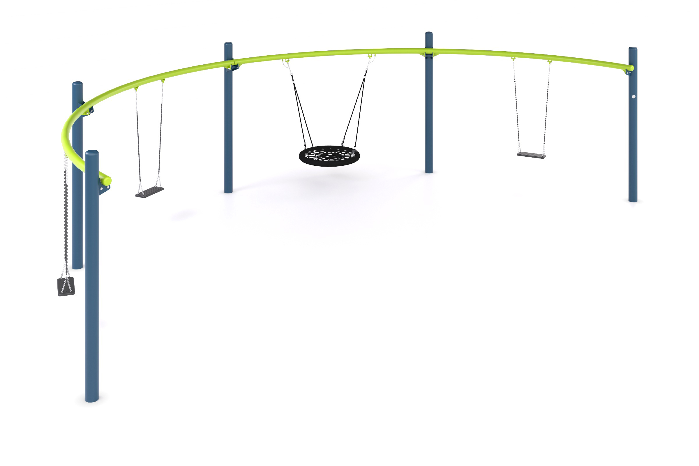 4 vietų sūpynės (3 standartinės sėdynės + 1 „Nest 1000” sėdynė). Skersiniai yra išdėstyti 2000 mm aukštyje. Sūpynėse sumontuotos patikimos pakabos tvirtinimo detalės. Visi elementai tvirtinami tvirtomis varžtinėmis jungtimis.
