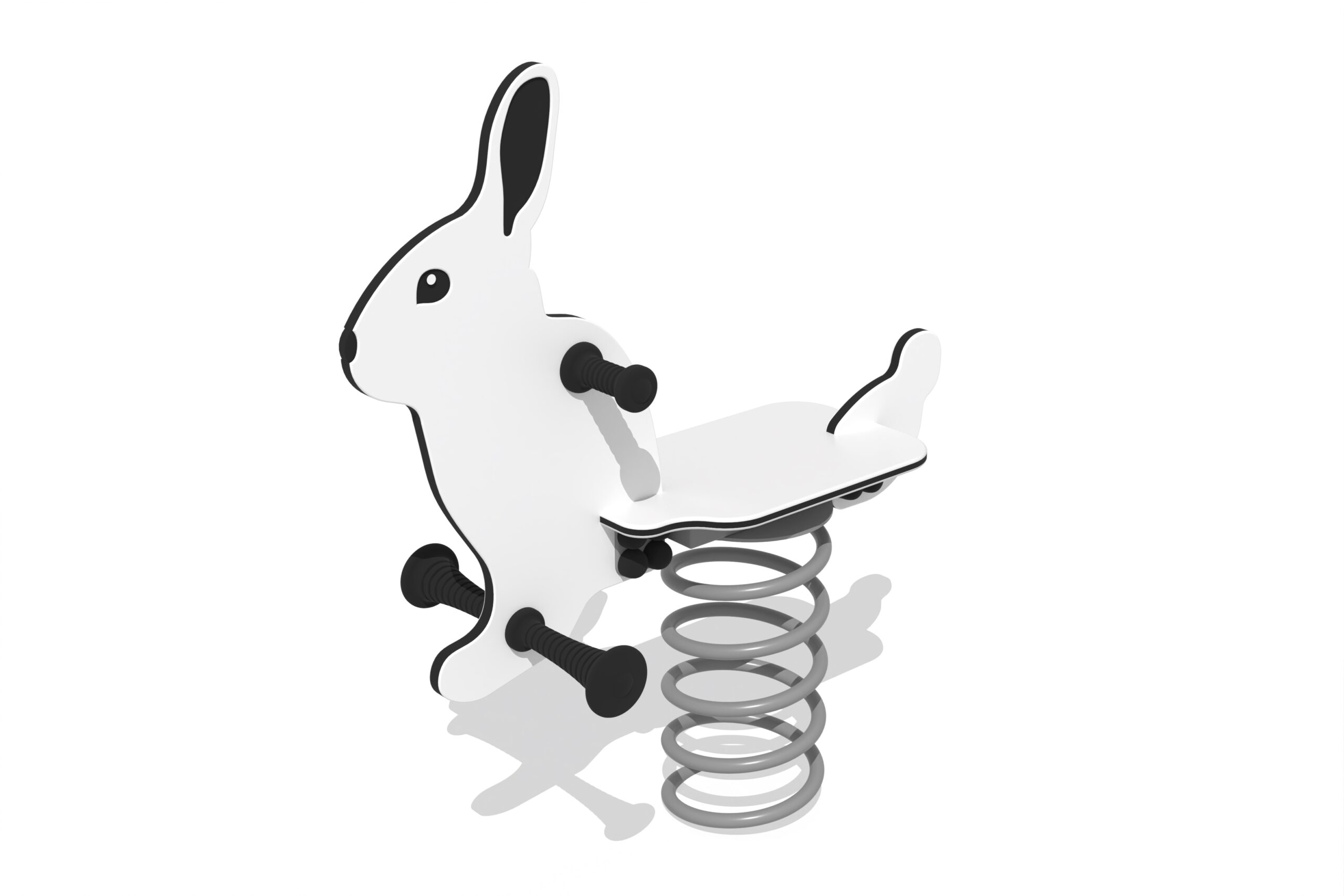 WHITE RABBIT yra 1 vietos spyruoklinės sūpynės, panašios į triušį. Sūpynės padeda vaikams išsiugdyti pusiausvyrą, gerina jų formą ir leidžia smagiai leisti laiką. Vaikai gali siūbuoti atgal-pirmyn arba atvirkščiai. Sūpynės yra su rankenomis ir kojų atramomis. Spyruoklės pagamintos iš cinkuoto ir milteliniu būdu dažyto plieno. Gyvūno forma pagaminta iš 19 mm HDPE. Gaminio antžeminės tvirtinimo detalės yra pagamintos iš karštai cinkuoto metalo ir standartiškai įbetonuojamos į žemę.