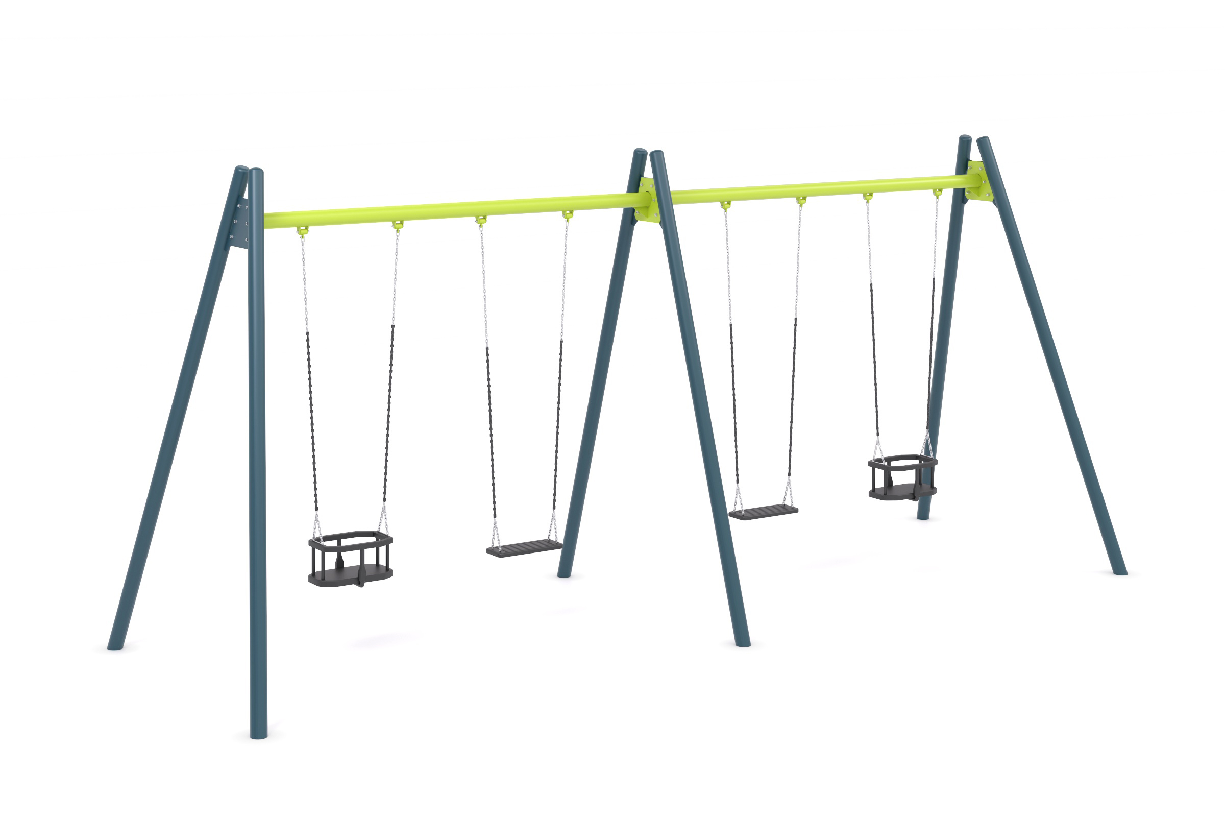 Sūpynės su dviem įprastomis sėdynėmis + dviem kūdikių kėdutėmis (aukštis – 2500 mm)