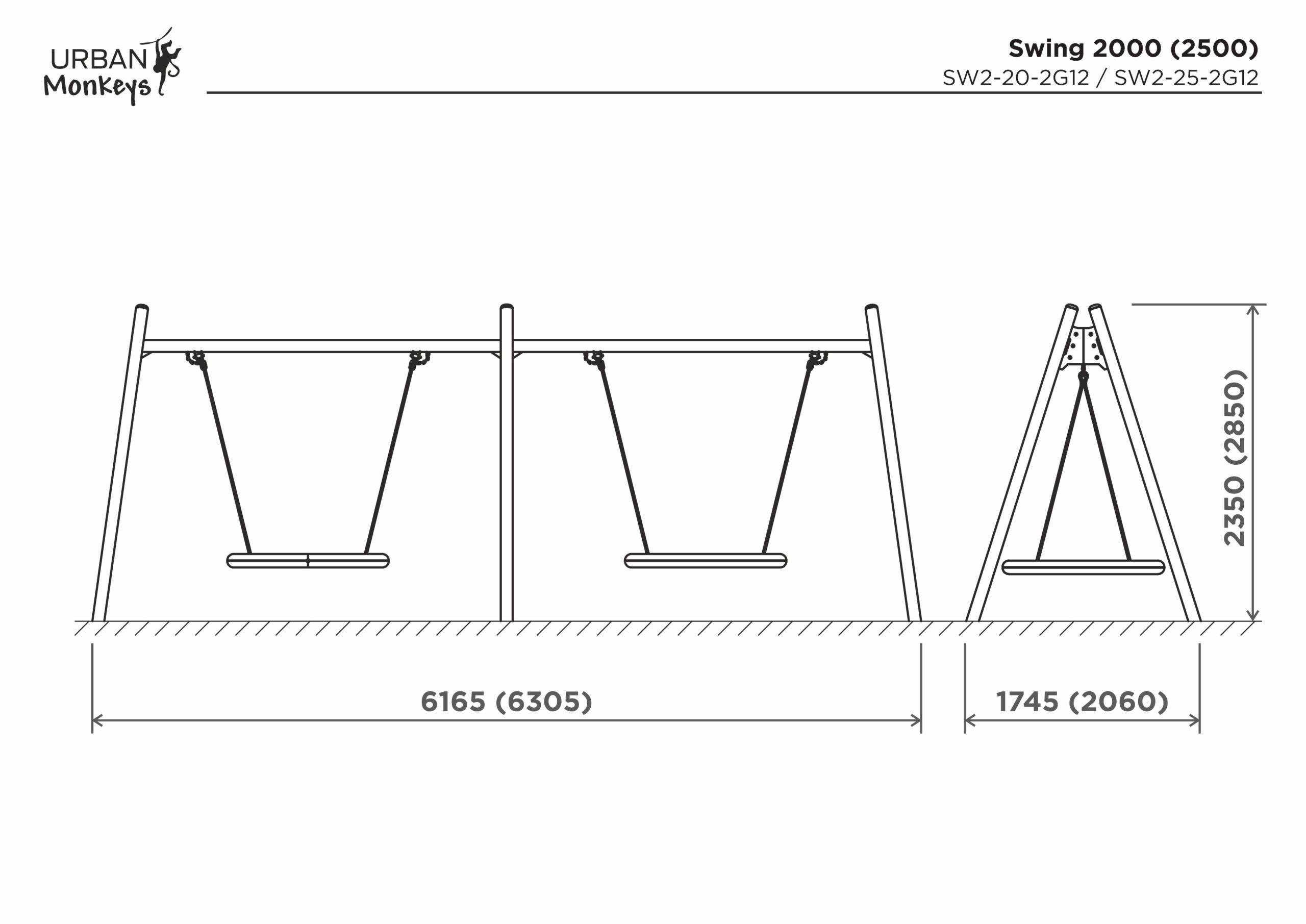 Sūpynės su dviem „Nest“ sėdynėmis 1200 mm (aukštis – 2500 mm)