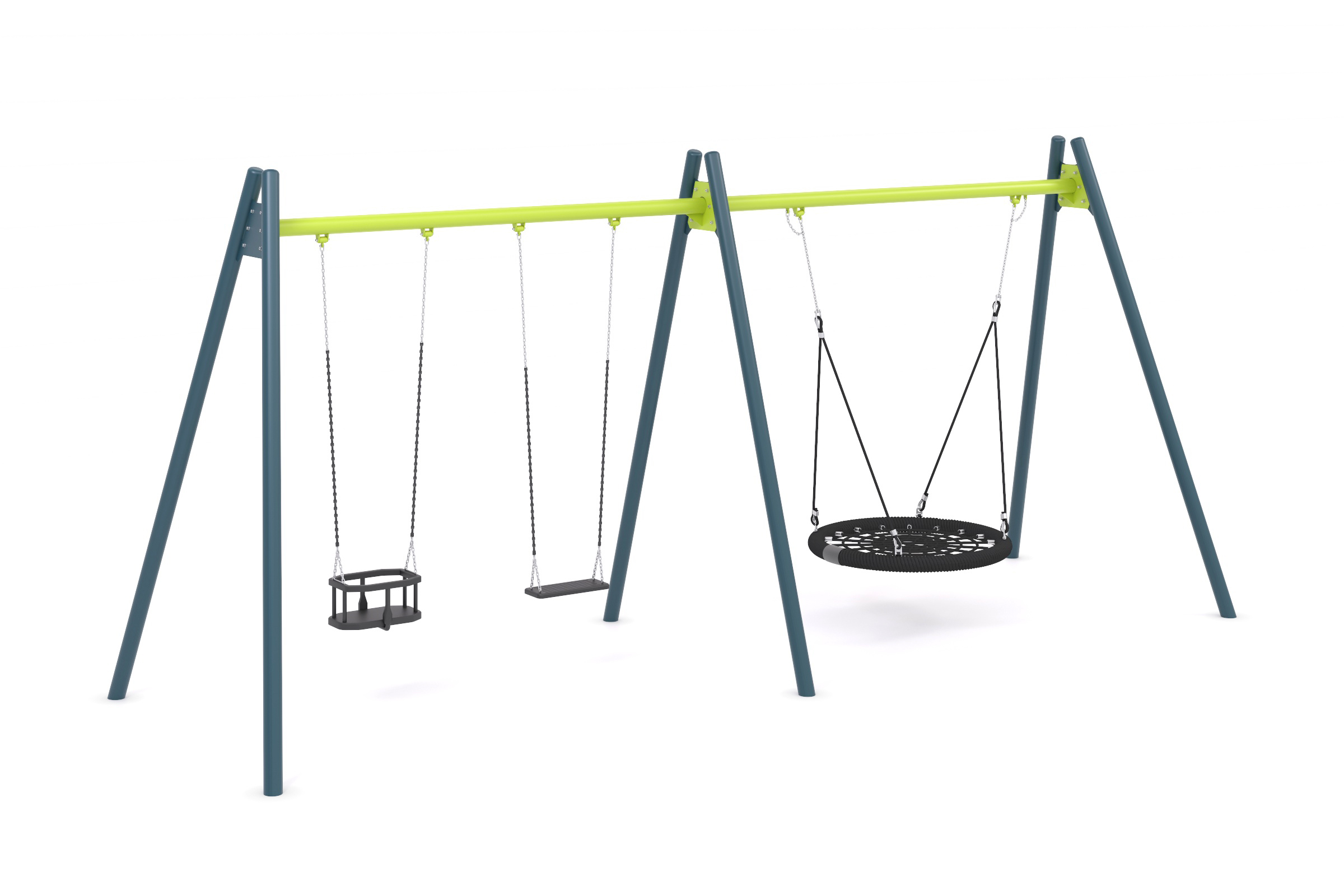 Sūpynės su viena įprasta sėdyne + viena kūdikio kėdute + viena Nest kėdute 1200 (aukštis – 2500 mm)