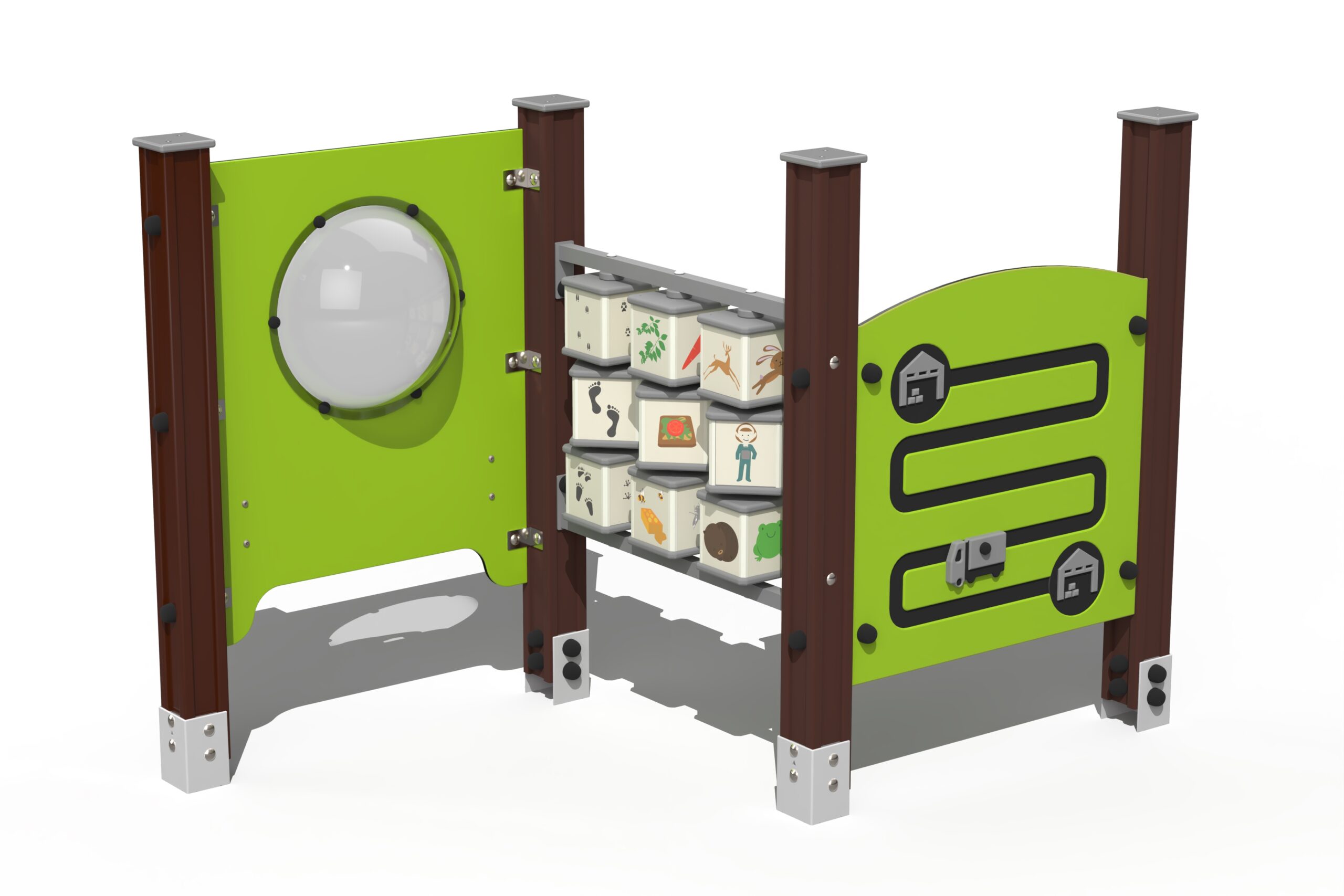 Pradžia Žaidimų aikštelės Mokymasis lauke ir muzikiniai žaidimai Užsiėmimų sienelės Courier Play, gyvūnai, kabina