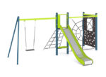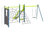 Žaidimų kompleksą sudaro sūpynės 1 vietai, nerūdijančio plieno čiuožyklos aukštis 1500 mm, virvių tinklas, suoliukas po čiuožykla, ugniagesiai, laipiotojai virve ir laipiojimo skydas. Medžiagos: metalas, HDPE plastikas, nerūdijantis plienas AISI-304, 2mm., armuotas lynas su 16mm skersmens, drėgmei atsparus laminuotos faneros lakštas.