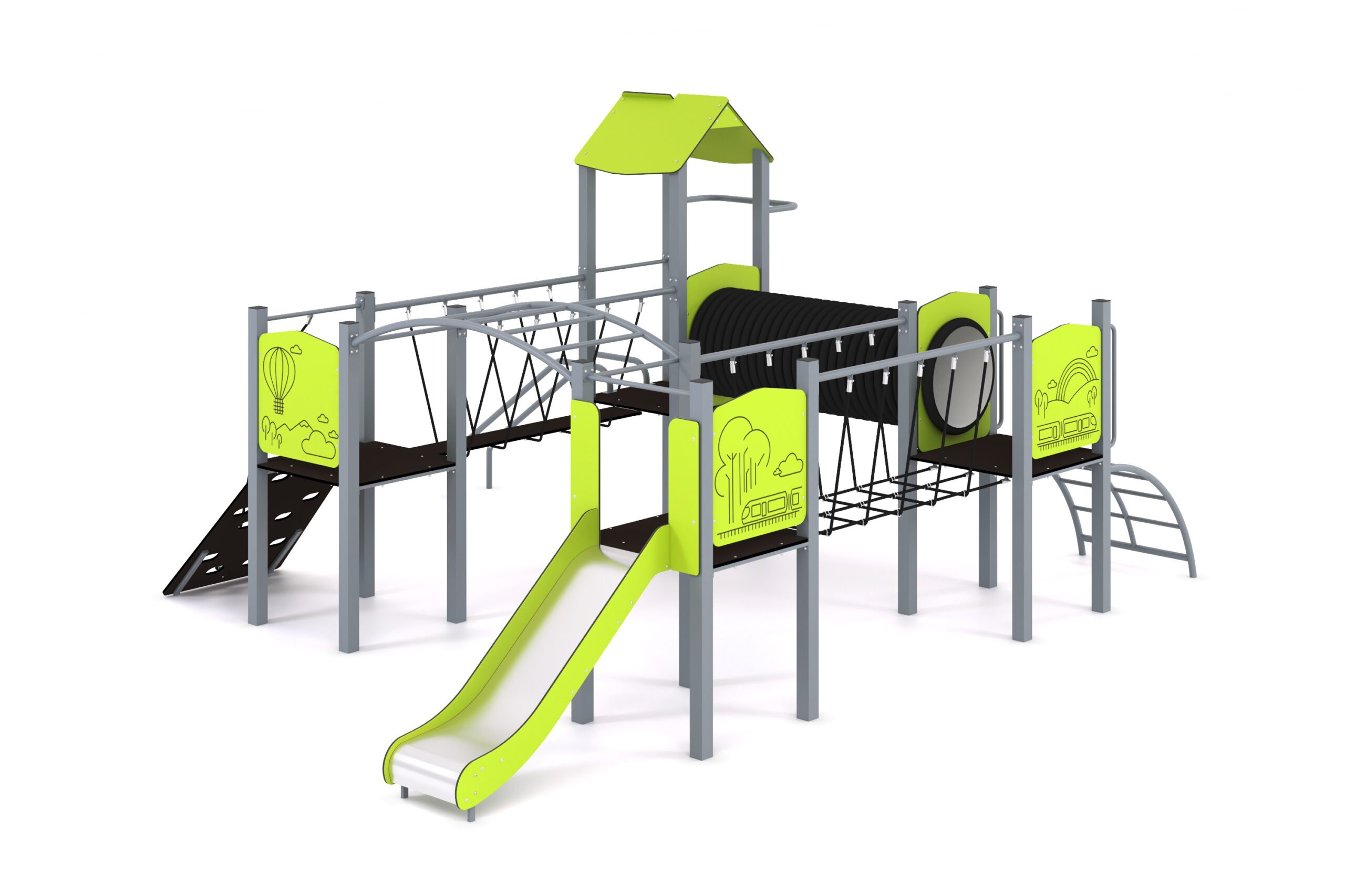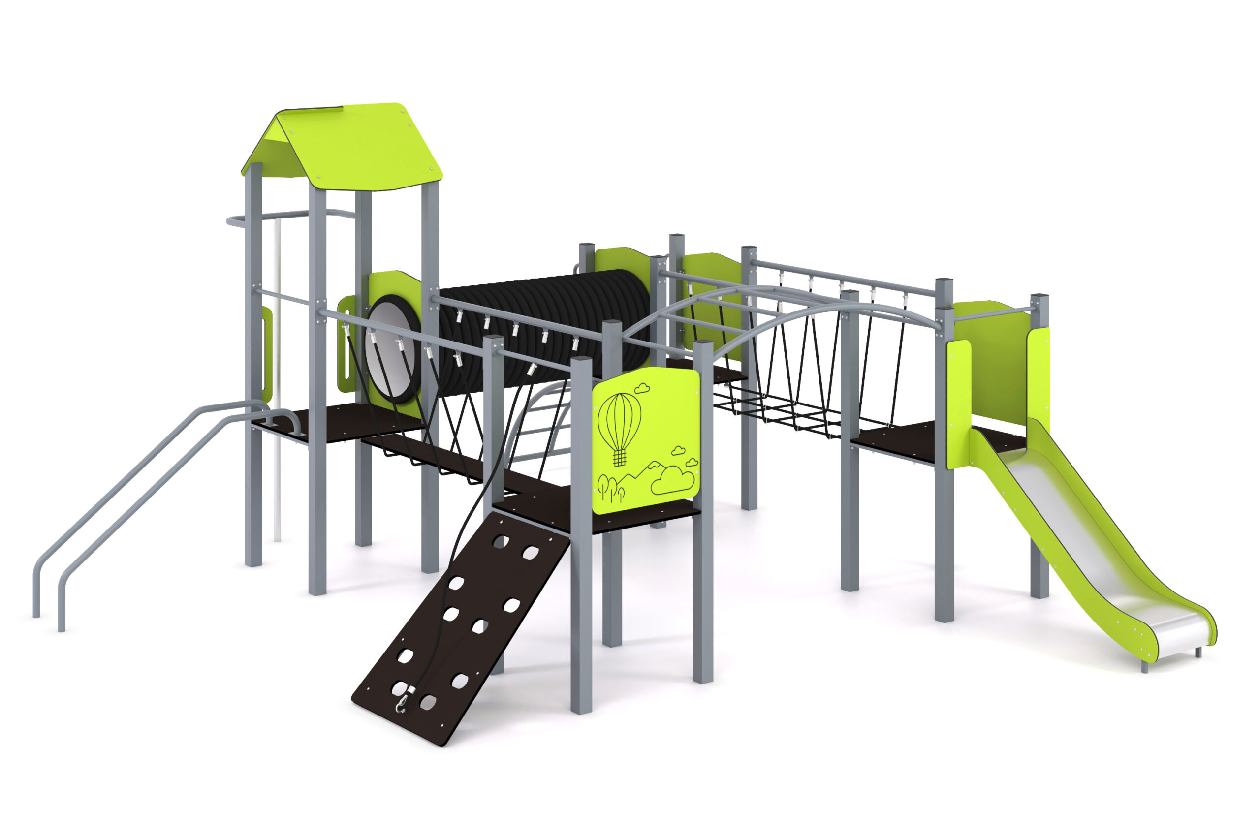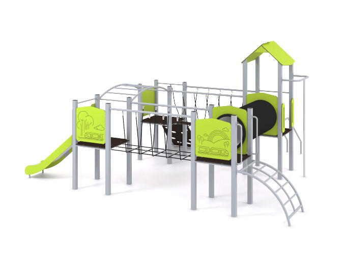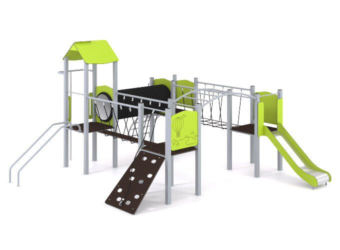 Žaidimų kompleksą sudaro čiuožyklos, ugniagesiai, kopėčios, rampa, tiltai, tunelis, beždžionių barai ir žaidimų aikštelės.