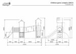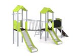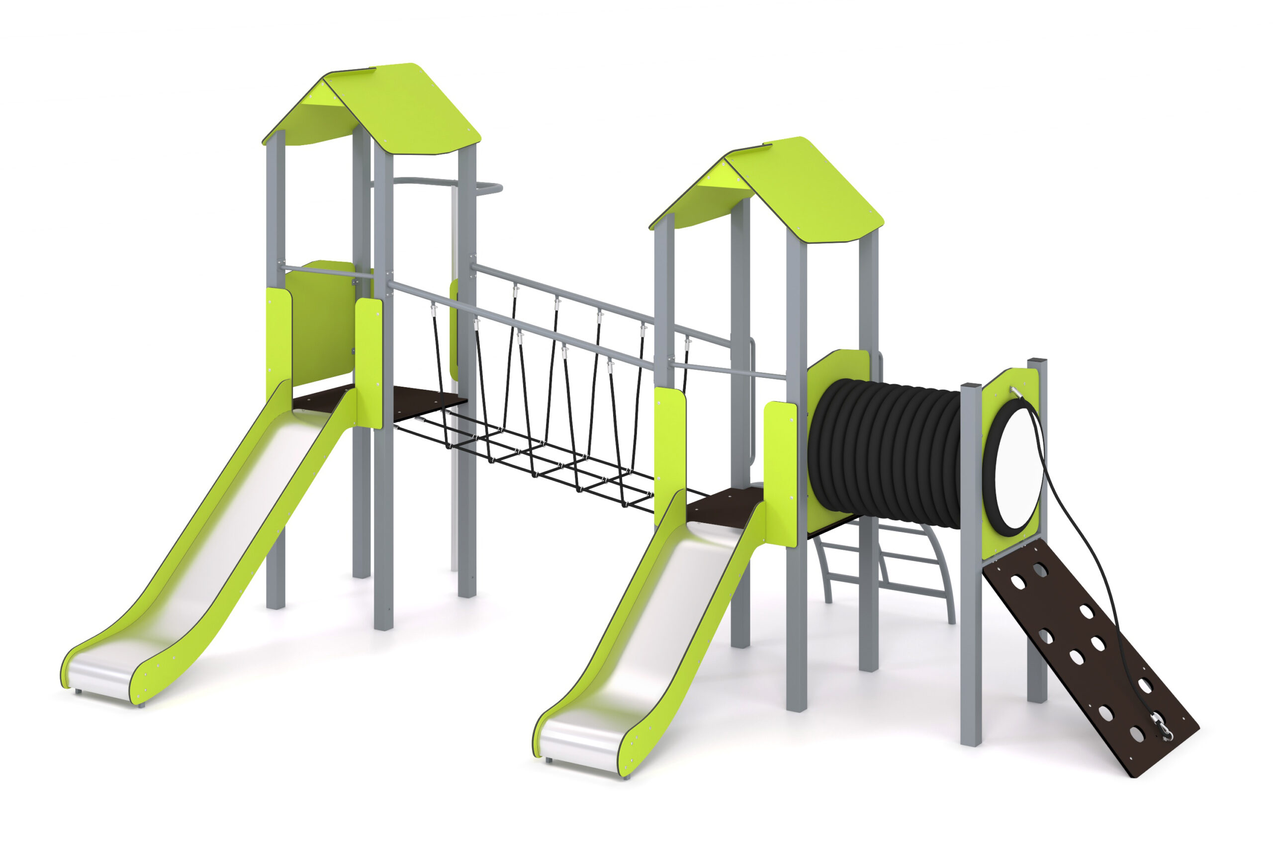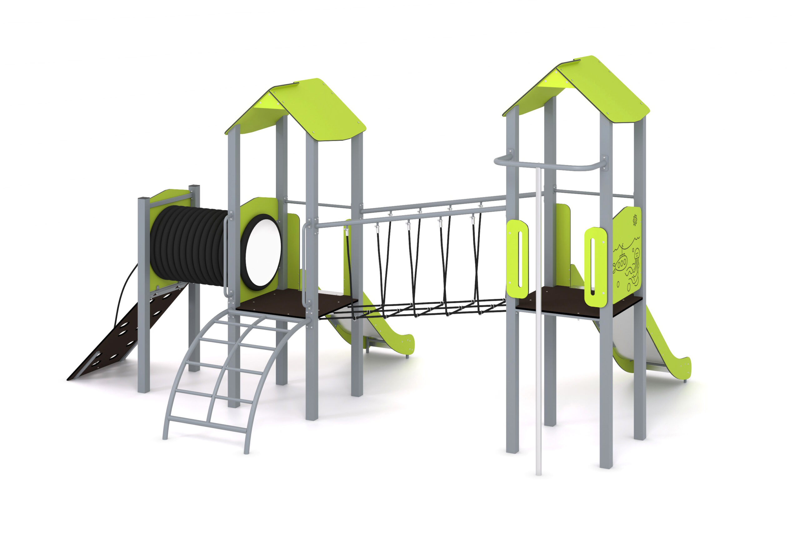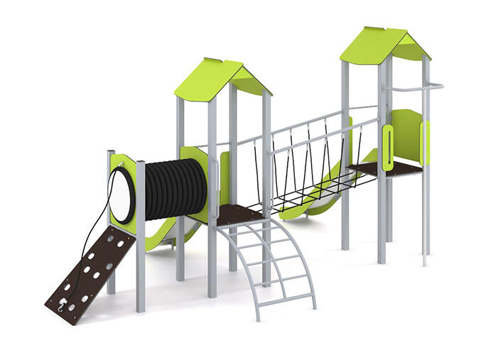 Žaidimų kompleksą sudaro čiuožyklos, ugniagesiai, kopėčios, rampa, tiltas, tunelis ir žaidimų skydai.