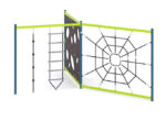 Įranga, padedanti lavinti smulkiąją motoriką ir koordinaciją su lynų tinklu, kopėčiomis, virve ir laipiojimo skydeliu. Medžiagos: metalas, sustiprinta 16mm skersmens virvė, laipiojimo sienelė – drėgmei atspari laminuotos faneros lakštas.