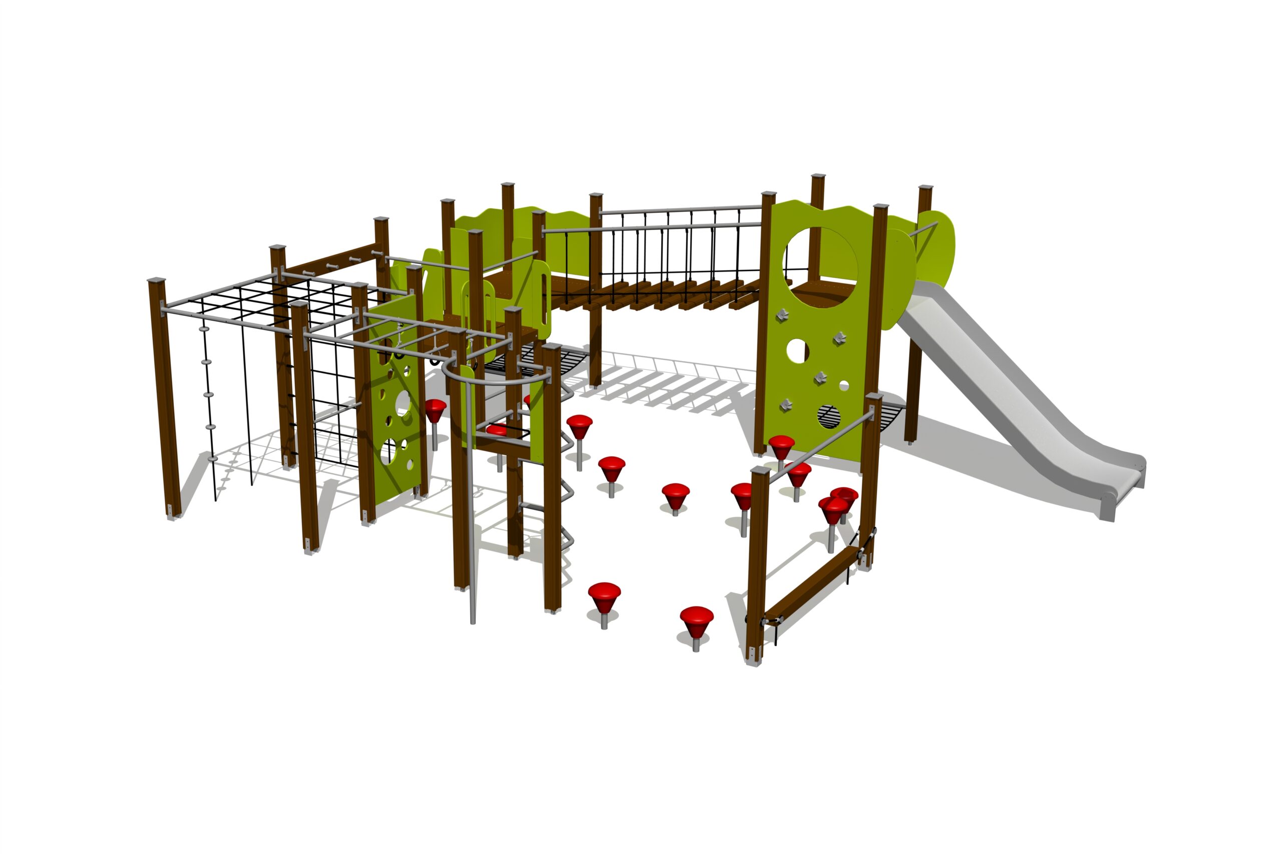 Šis įdomus ir universalus žaidimų centras patenkina visus laipiojimo poreikius ir siūlo daugybę būdų lavinti vikrumą, jėgą, drąsą ir pusiausvyros įgūdžius. Skirtingos kopėčios suteikia prieigą prie trijų platformų. Dvi platformos yra sujungtos pusiausvyros tilteliu su judančiais laipteliais, o po jomis yra du tinklai siūbuoti. Centras siūlo treniruoklius, padedančius lavinti vikrumą, jėgą, pusiausvyrą ir koordinaciją (horizontali ir vertikali tinklinė sienelė, horizontalios kopėčios, beždžionių strypai su rankenomis, laipiojimo sienelė su skylutėmis, kelios laipiojimo virvės, perjungiamas balanso sijos, pusiausvyros stovai). Itin plati čiuožykla ir gaisrininko stulpas suteikia galimybę nusileisti žemyn.