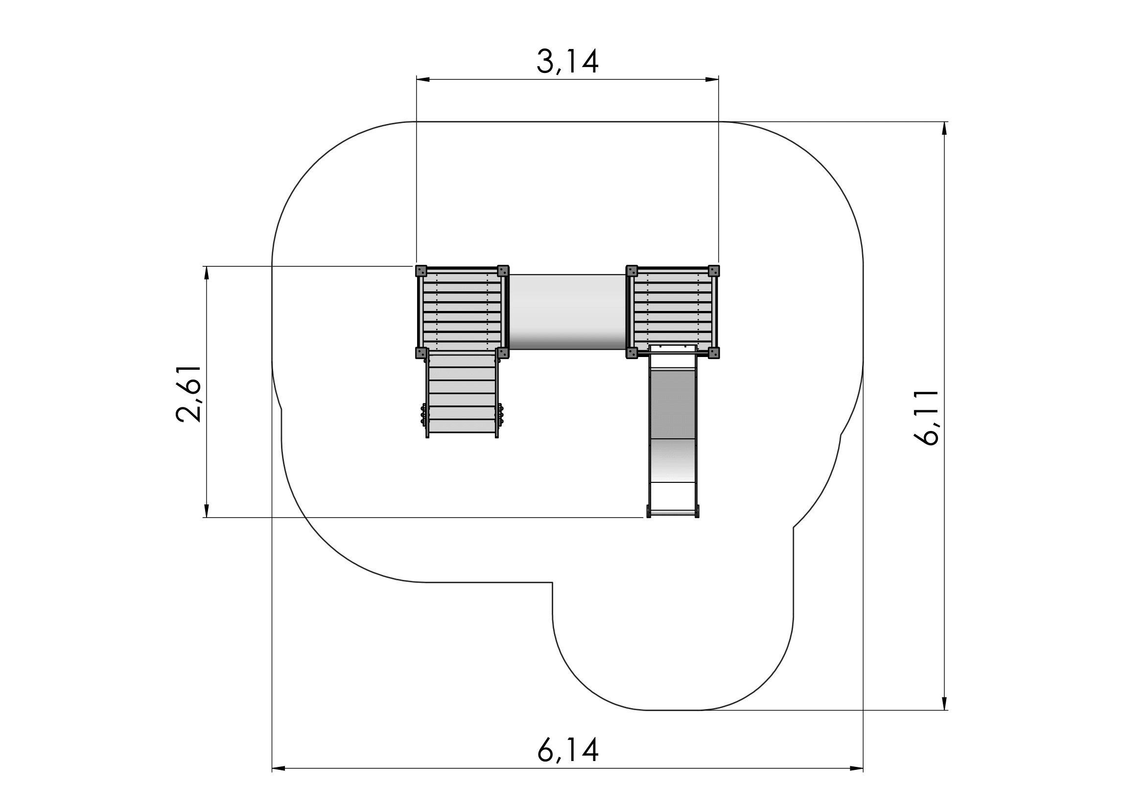 Vaikų žaidimų centras su dviem platformomis, tuneliu ir veiklos skydeliais. Į platformą veda laiptai su turėklais, o į priekį – šliaužimo tunelis. Šoninės žaidimų centro plokštės gali būti perjungiamos įvairioms veikloms sienoms arba teminėms spausdintoms plokštėms (gyvūnams, paukščiams, žuvims, medžiams, uogoms ir kt.). Plokščių dizainas bus derinamas su klientu užsakymo metu.