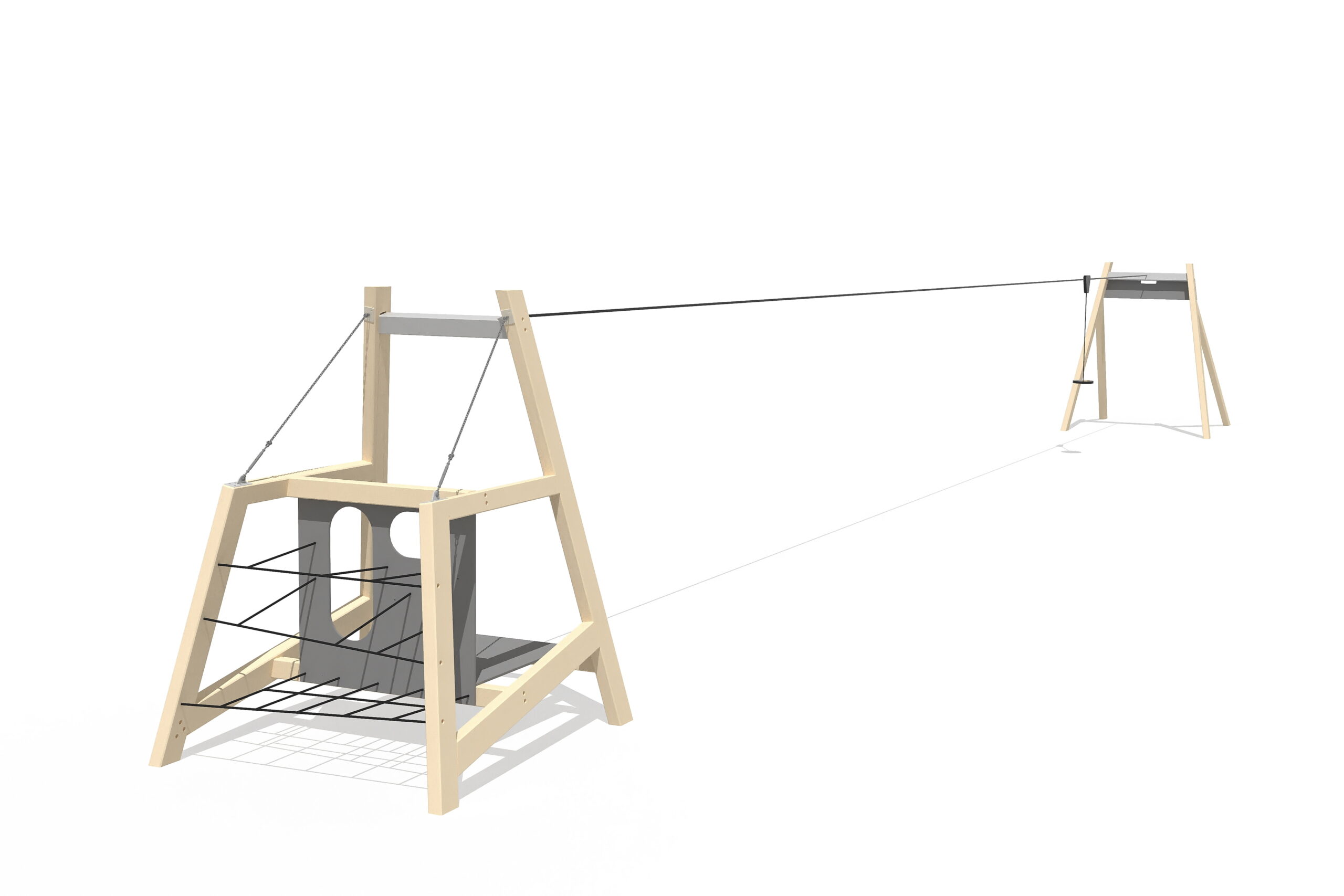 Unikalus atrakcionas AMAZON pagamintas iš patvarios laminuotos medienos ir jam suteiktas atitinkamas kokybės sertifikatas. Sluoksniuotos medienos stulpai sujungiami naudojant naujovišką įsmeigtą jungtį. Stulpų skerspjūvis yra 105x210mm, o tinklai tarp jų pagaminti iš itin patvaraus 16mm plieninio laipiojimo lyno, padengto poliesteriu ir su plastikinėmis jungtimis. Šis funkcionalus laipiojimo rėmas siūlo įvairias laipiojimo, balansavimo ir šliaužiojimo galimybes. Tai derinama su daug adrenalino turinčiu vaidmenų žaidimu „Tarzan trail Zipline“, leidžiančiu vaikams sėdėti ir slysti nuo vieno elemento prie kito. Laminuotos ir dažytos medienos stulpai įbetonuojami į žemę naudojant karštai cinkuoto metalo jungiamąsias detales.