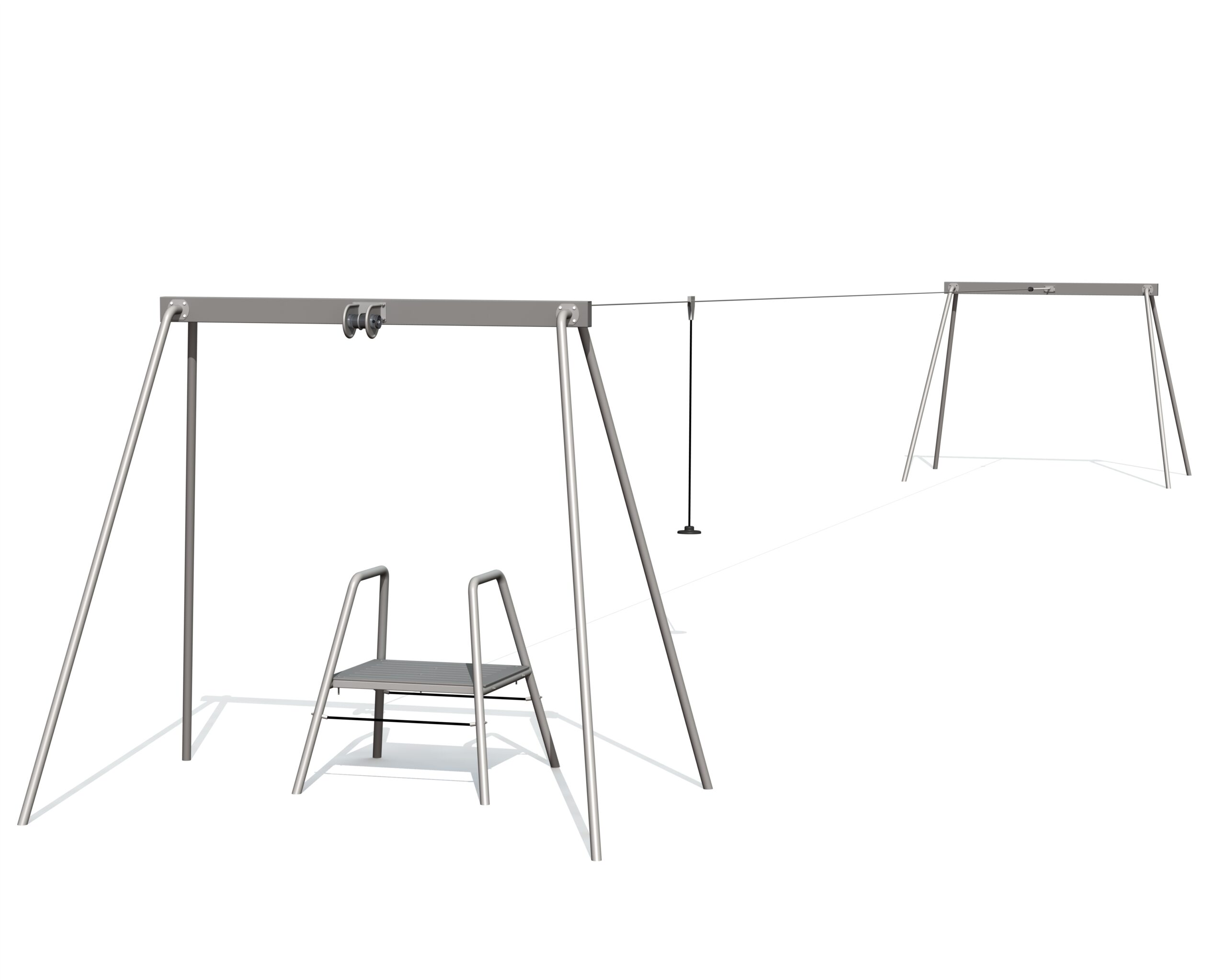 Tarzano bėgių užtrauktuko rinkinys yra būtent tai, apie ką svajoja kiekvienas berniukas ir mergina. Komplektas sudarytas iš starto platformos ir dviejų tvirtų karštai cinkuoto metalo rėmų, kurie sujungti 25 metrų plieniniu kabeliu. Kabelis yra su užtrauktuku, o prie jo grandinėle pritvirtinama aliuminiu sustiprinta guminė sėdynė. Abiejuose kabelio galuose yra specialios spyruoklės, kurios padeda sustabdyti vežimėlį. Trasa gali būti montuojama su ilgesniu, iki 50 metrų kabeliu. Antrasis rėmas turi būti dedamas apie 0,6 metro žemiau nei pirmasis.